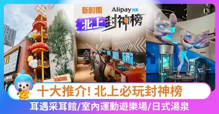 新假期 x AlipayHK 北上必玩封神榜強勢登場!為你精選大灣區最新、最熱門的玩樂好去處,輕鬆規劃精彩北上行程。9月特別整合10大必玩項目,包括「耳遇采耳館」的舒適休閒、「深圳不可思議運動街區」及「「光明區大飛船」科技館新館」的刺激娛樂體驗、以及「深圳甘坑古鎮」的文化歷史沉浸體驗。立即開啟AlipayHK,領取專屬優惠券,享高達$262禮券優惠,讓你北上玩樂更盡興、消費更划算!