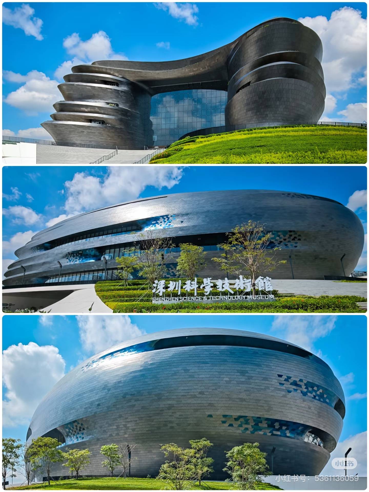 深圳科技館位於深圳市光明中心區,於今年5月新開幕,因為外型酷似「宇宙飛船」,因此被稱為「光明區大飛船」。佔地13萬平方米,連同地下層數共有8層,分為7大功能區,以「數字文明,創新末來」為主題,以3D、4D、巨幕影院及AI技術,介紹科技及數字文明,為遊客打造沉浸式玩樂體驗。深圳科技館的帷幕牆由9萬多塊不同尺寸的不銹鋼面板拼接,陽光折射能模擬極光、星雲、耀斑等宇宙現象,配合科技館主題更是必到打卡位!