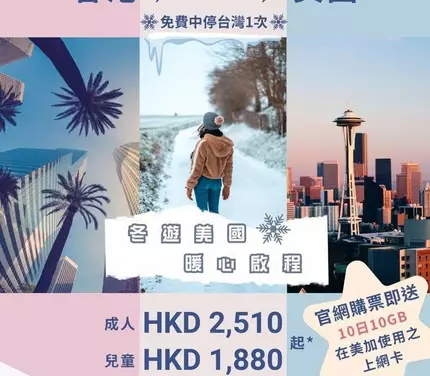 【冬遊美國 暖心啟航 😍】美國來回HKD2,510起*✈️