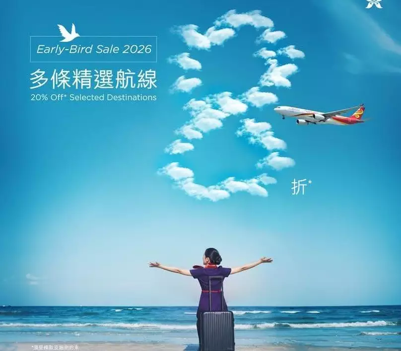 Hong Kong Airlines is bringing you “Early-Bird Sale 2026”! Starting now, book your tickets for travel from March to May 2026 and enjoy 20% off on airfare!