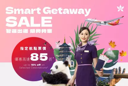 由而家開始到 3月 31日預訂2026年4月7日至7月10日出發之機票,即可享票價高達85折優惠。把握限時優惠,立即到手機版網站/App 預訂: