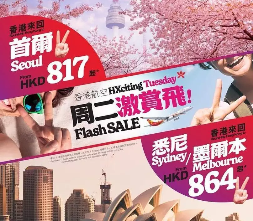 今次香港航空 「周二激賞飛」帶你飛遠啲, 除咗亞洲熱門城市,今星期更有澳洲航點選擇!今晚凌晨 12 點 ( 3 月 24 號)開售嘅優惠機票旅遊日期由 2026 年 3 月 25 日至 9 月 11 日,咁長時間,俾大家提早計劃,請定假!