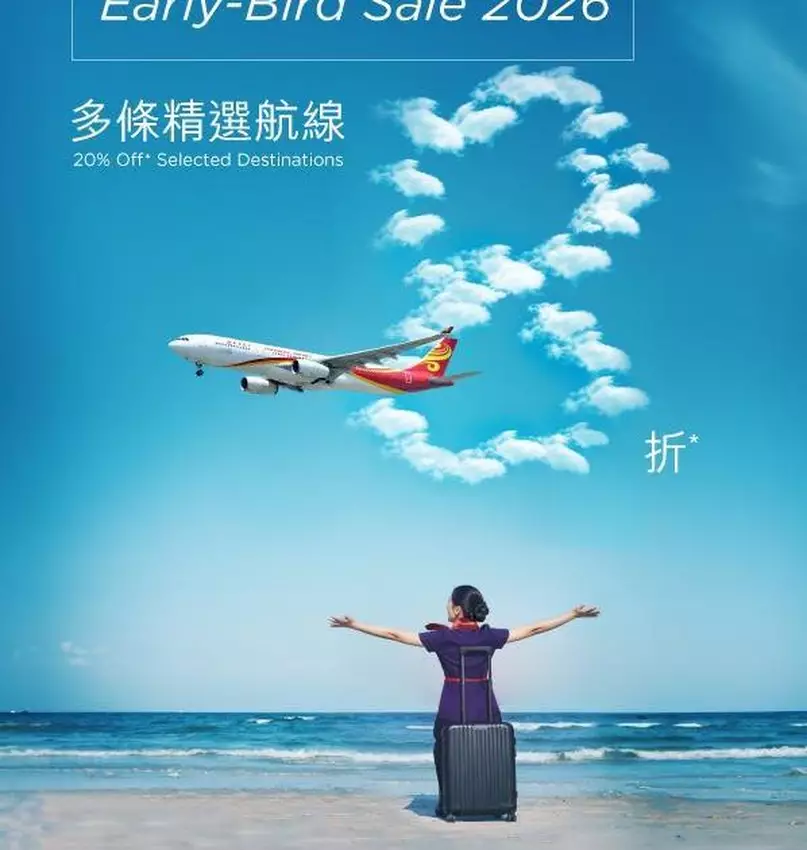 Hong Kong Airlines is bringing you “Early-Bird Sale 2026”! Starting now, book your tickets for travel from March to June 2026 and enjoy 20% off on airfare!