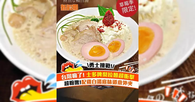 台灣瘋了! 士多啤梨拉麵超衝擊!超粉嫩 配雞白湯底味道意外夾