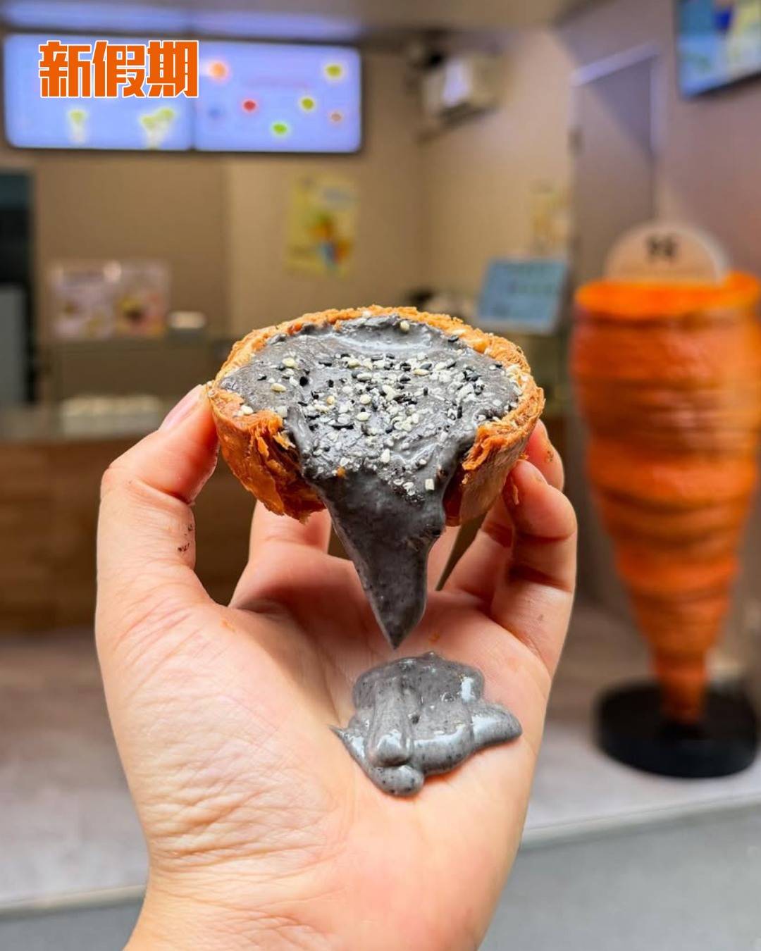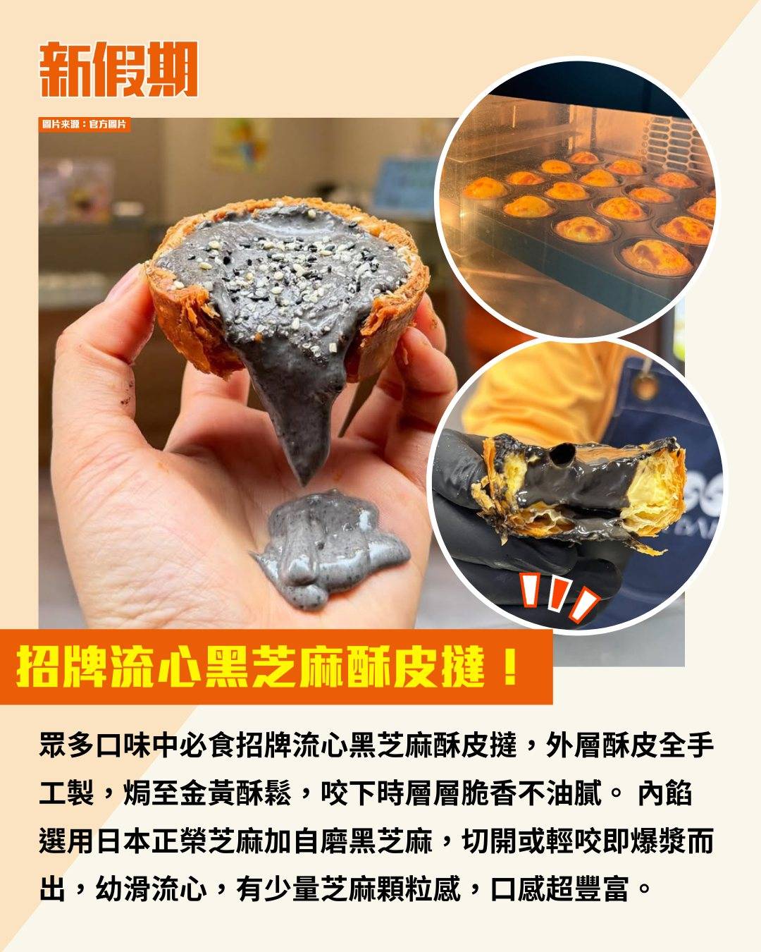 眾多口味中必食招牌流心黑芝麻酥皮撻,外層酥皮全手工製,焗至金黃酥鬆,咬下時層層脆香不油膩。 內餡選用日本正榮芝麻加自磨黑芝麻,切開或輕咬即爆漿而出,幼滑流心,有少量芝麻顆粒感,口感超豐富。