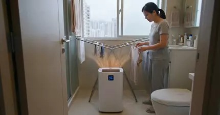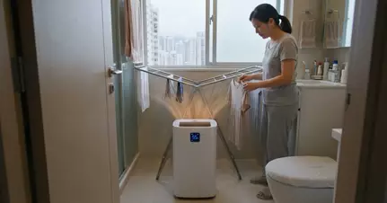 若想進一步加速乾衣,抽濕機是最佳拍檔。譚敦慈建議,應將濕衣物及抽濕機集中在一個細小的密閉空間內,例如浴室或衣帽間。使用時必須緊閉門窗,若在浴室内,更要蓋上馬桶蓋以防濕氣對流。她提醒,抽濕機的最佳擺放位置是「室內的正中央」,而非牆角,這樣才能讓空氣循環更有效率,全方位抽走衣物上的濕氣,多管齊下,乾衣效能自然倍增。