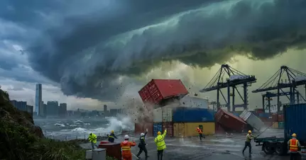 2001年5月9日:巧合地在四年前的同一天,另一股颮線吹襲香港,葵涌貨櫃碼頭同樣有50個貨櫃被吹翻。