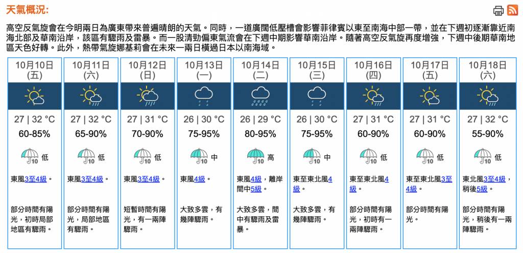 天文台發佈九天天氣預報 下周初雷雨區殺到