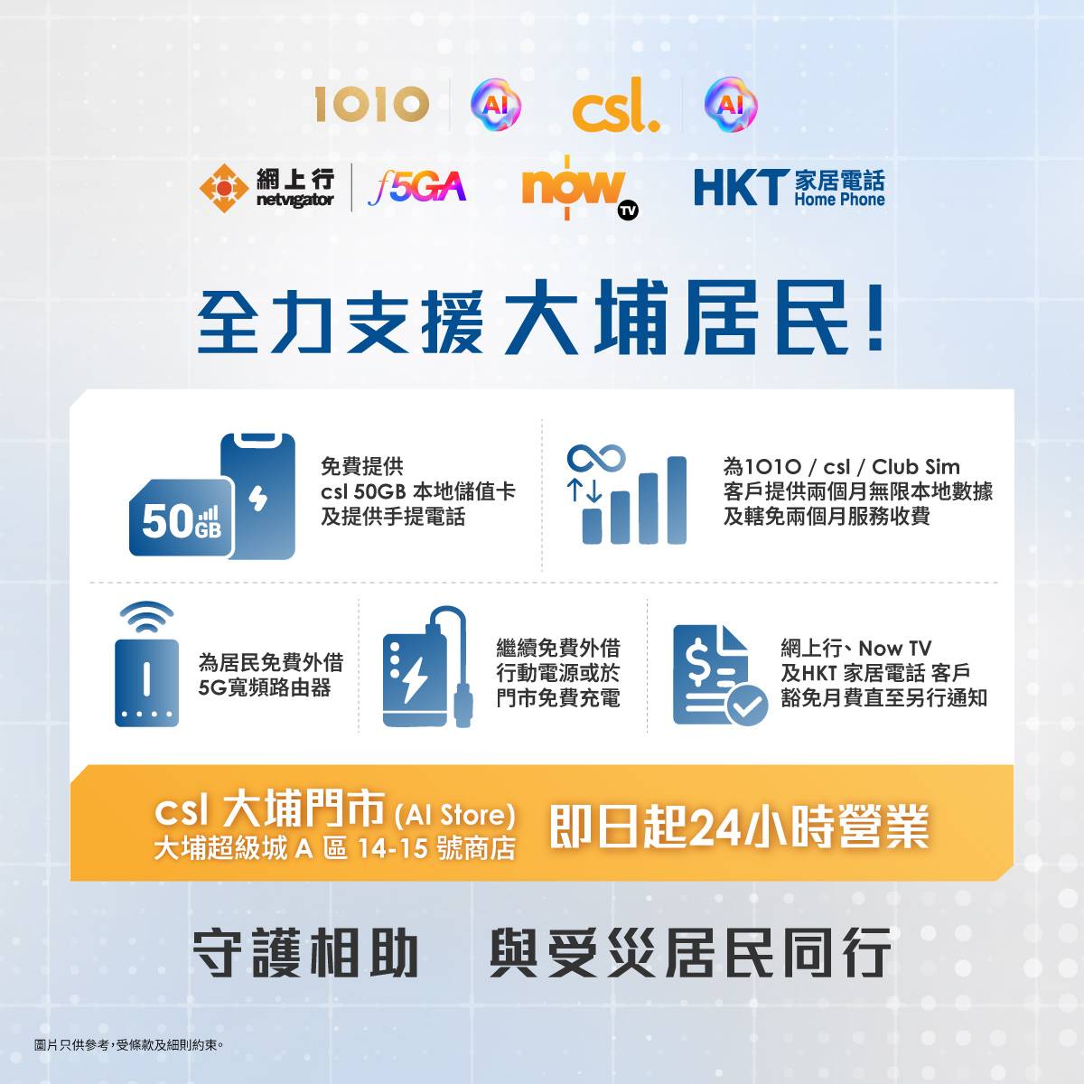 HKT 會繼續守護相助,與受災居民同行!Stay safe!受條款及細則約束。