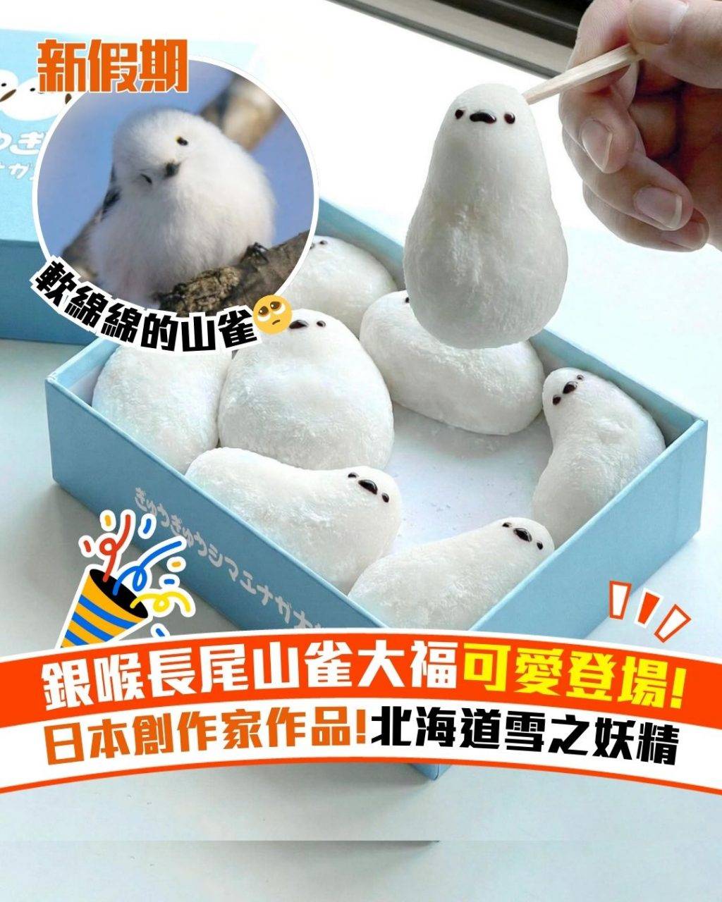 北海道的吉祥物銀喉長尾山雀深受大家喜愛,外型圓滾滾、全身雪白,只有一雙芝麻大小的黑色眼睛和小小嘴喙,看起來就像會飛的小麻糬或豆大福,因此被日本人暱稱為「雪之妖精」。日本創作家いしかわかずや向來發布各種充滿幻想的創意作品,最近他創作了山雀造型的大福,軟綿綿Q彈感覺很合襯,如果商品化成為手信的話一定大賣!